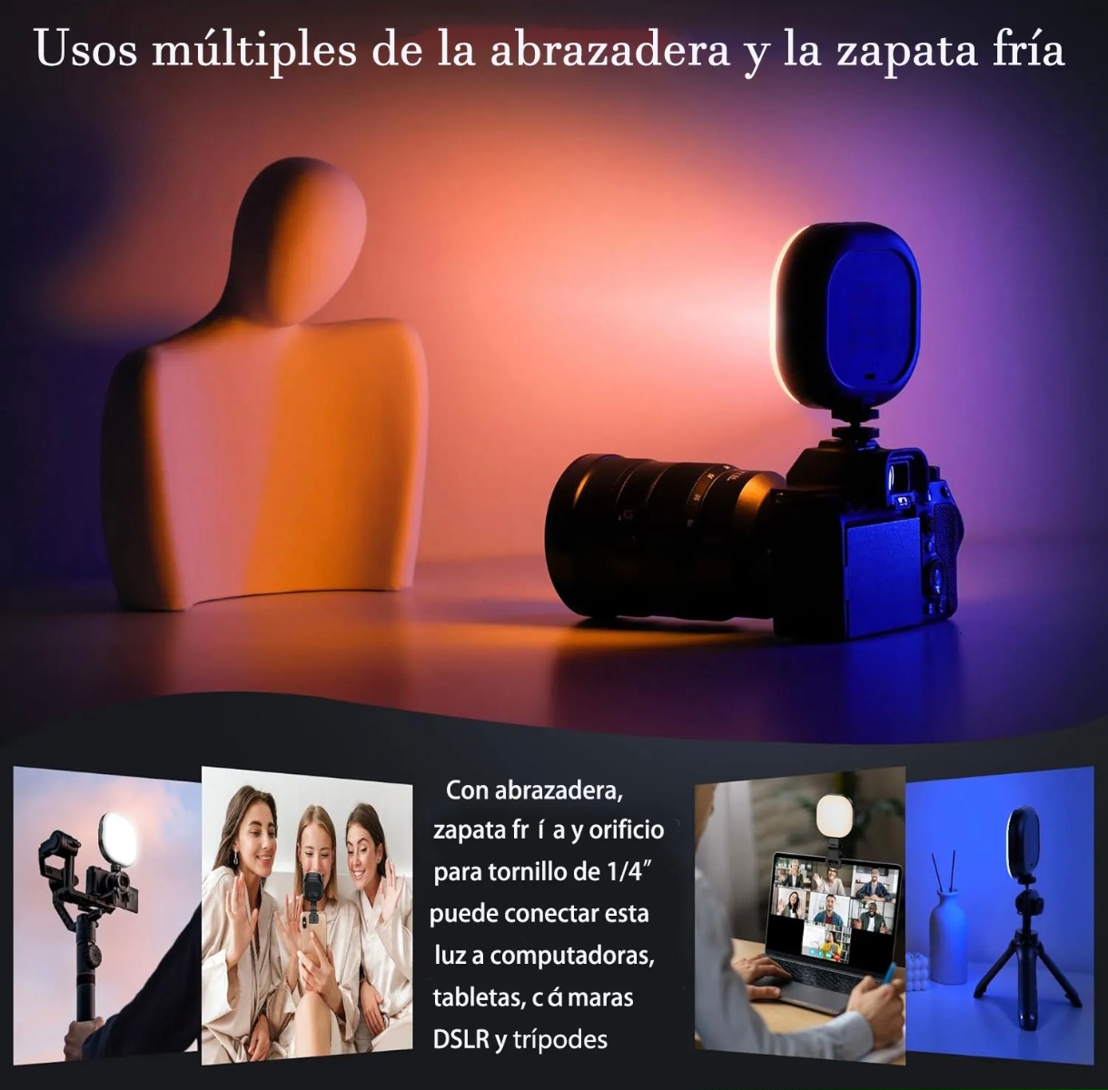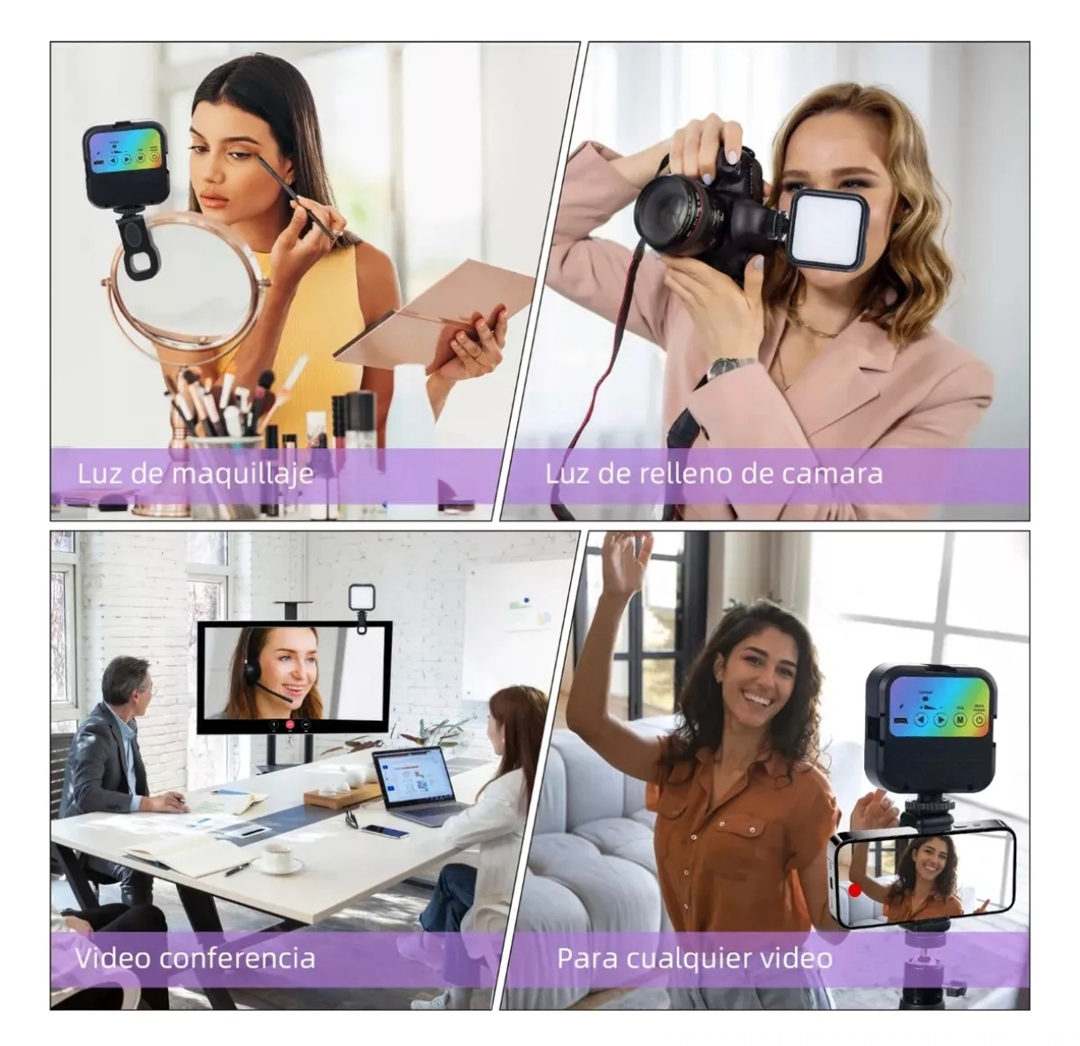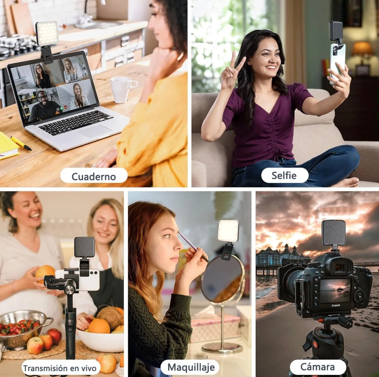 - Diseño versátil: compatible con teléfonos, laptops y tablets, ideal para selfies, videollamadas, vlogging o maquillaje.