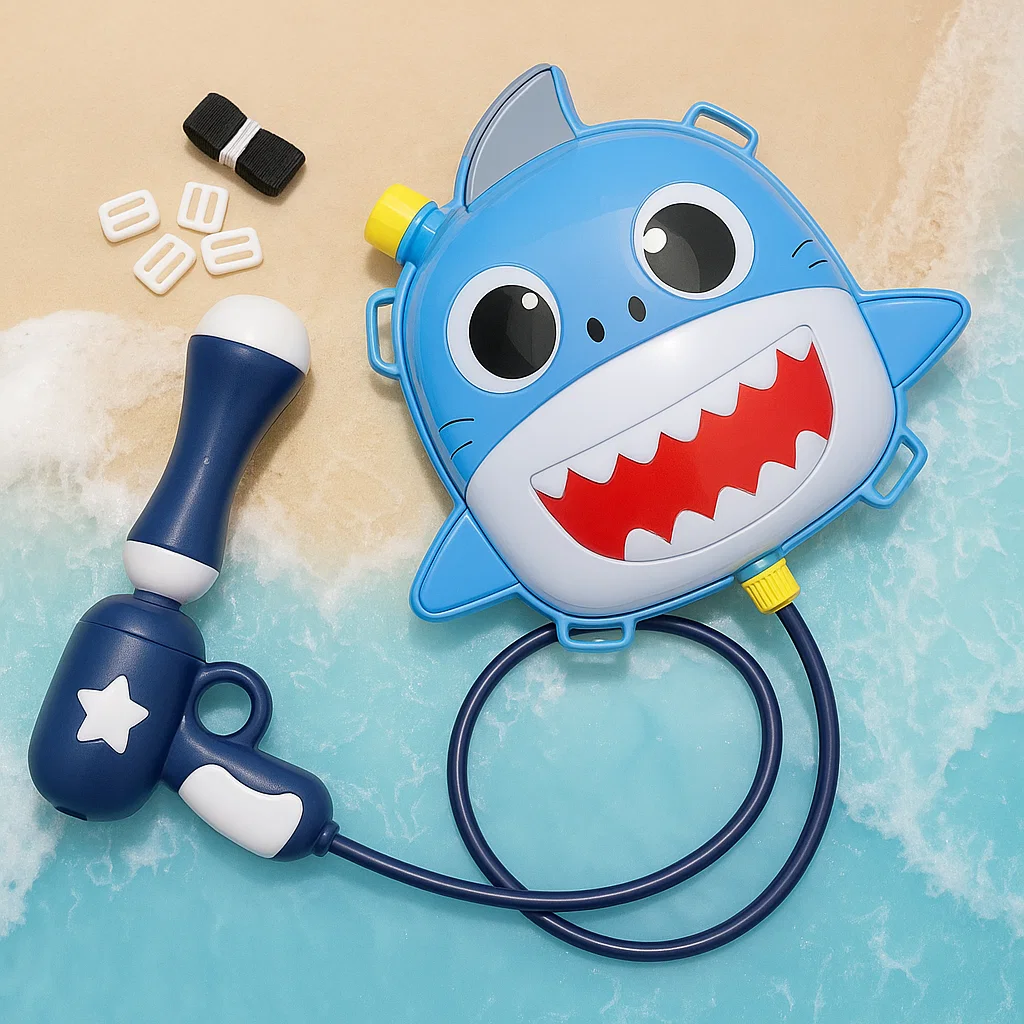 Este lanzador de agua en forma de mochila con diseño de tiburón es perfecto para niños que aman jugar al aire libre, moverse, reír y... ¡mojar todo a su paso! Solo llénala, ajusta las correas ¡y a la batalla acuática!